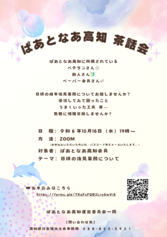 お申し込はこちらまで→→→令和6年度 ぱあとなあ茶話会 (google.com)